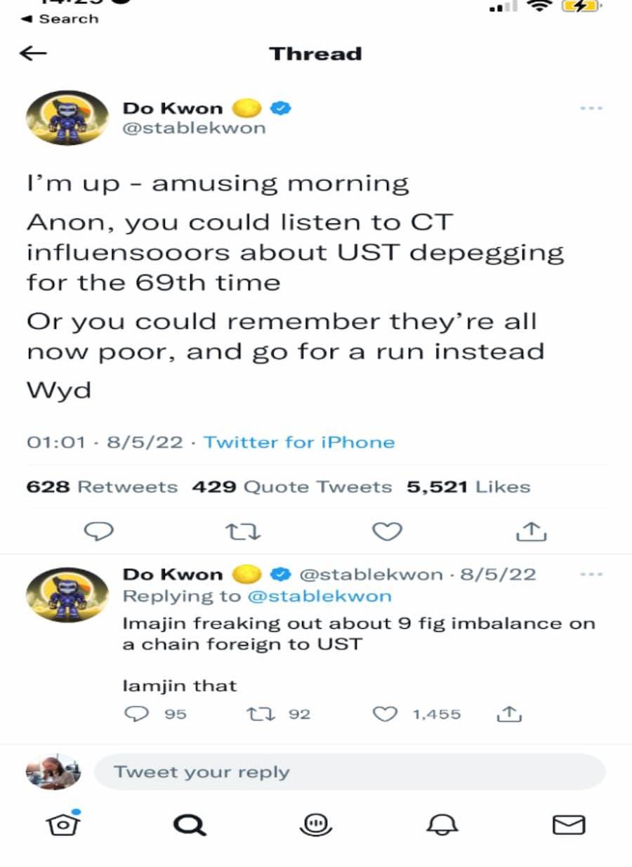 圖4:DoKwon的個人Twitter截圖,2022年5月8日我們繪制了流向Curve資金池匯總的時間序列圖。