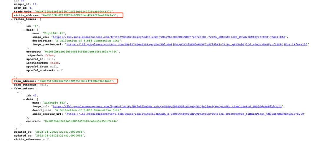 根據后臺地址的接口拼接上地址,可以看到攻擊地址和受害者的地址。