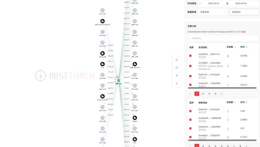 繼續使用MistTrack分析攻擊者地址交易歷史: