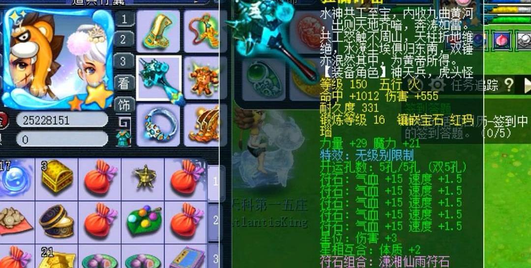 這樣的無級別武器售價達到上百萬人民幣此外,玩家≥65級即可開啟法寶系統,≥109級可開啟神器系統,≥129級可開啟靈寶系統,三者本質上都屬于法寶系統,但獲得手段、培養方式、消耗材料、對應活動及積分體系不同。大多數法寶用于戰斗,本質上是增加屬性或技能,也有少部分法寶用于生活技能。法寶僅1級可交易。召喚獸玩家在戰斗中可以攜帶召喚獸或孩子出戰,二者本質上都屬于寵物系統,但培養體系不同、消耗材料不同。普通玩家基本只需要基礎任務寵,比武玩家則通常配備多只召喚獸及孩子以滿足物理傷害、法系傷害、配速、血耐需求。寵物帶有基礎屬性、技能、資質、內丹、特性,同時有其單獨的召喚獸裝備系統。寵物技能中,低級技能呈藍色,高級技能呈紅色,所以極品寵物通常會有全紅寶寶的叫法。夢幻西游的寵物系統又是一個及其精妙的設計,玩家使用的成品召喚獸基本都是通過人工合成的,這一過程也稱為打寶寶,是游戲最重要的消耗系統之一。打寶寶的每一個環節也都充滿了隨機性、概率,一只極品寶寶的打造需要消耗大量寶寶、洗煉材料、獸決,而這些材料通過玩家自己投入時間或者向其他人購買。