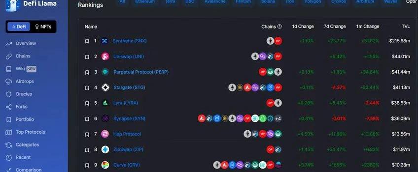 目前十大OptimismDappSynthetix在Optimism上鎖定了2億美元的總價值,合成資產協議Synthetix目前是L2上最大的Dapp。不過,這并不奇怪,因為Synthetix是第一個采用了Optimism的Dapp,所以它的先發優勢已經轉化為L2上早期特征。UniswapUniswap是去中心化交易的Web3標準。去年夏天,當DEX在Optimism上推出時,它的到來引發了人們對使用Optimism的DeFi場景的新一輪興趣。如果你想以低廉的價格進行加密貨幣交易,UniswapV3是目前你最好的選擇之一。Perpetual