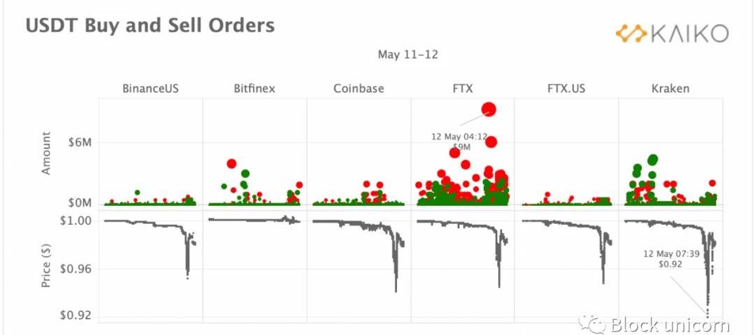 每小時交易量飆升約6.5億美元但是,去釘住是否起源于單一交易所?在上架該貨幣對的12家交易所中,只有6家的交易量很大,從圖表中我們可以看到FTX的市場份額在過去2天內從5月9日的16%飆升至今天的45%以上。我們還可以觀察到FTX.US的飆升,考慮到本周早些時候幾乎不存在的交易量,這是不尋常的。