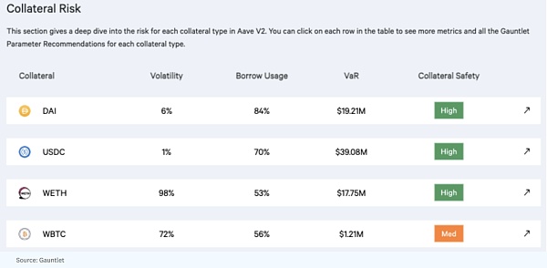 調整協議中的參數,如抵押品要求,有助于減少DAO不得不將其資金庫用于此類支持事件的可能性。下面是一個用于監測不同Aave市場風險的實時儀表板的例子。(披露:我是提供這些服務的Gauntlet的創始人和CEO)。用于量化風險的工具包括模擬工具,這些工具結合了算法交易和人工智能(如AlphaGo)中使用的工具。