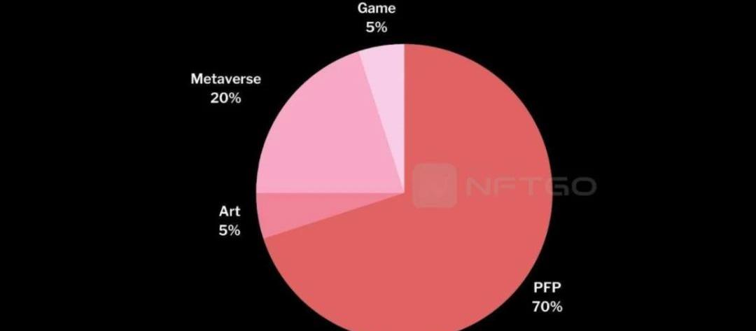 目前,PFP項目是NFT市場上最受歡迎的類別之一,根據NFTGo.io的排行數據,PFP項目占據了70%的NFT市場份額。