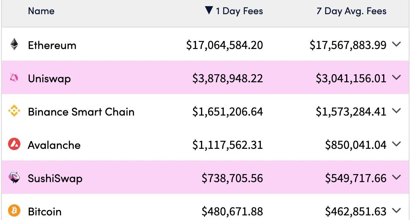 區塊鏈增加交易收入的主要方式是增加區塊效用;增加每個塊內可以做的事情的價值。這可以通過在網絡之上構建有價值的應用程序、增加網絡上可能的表面積和用戶可以獲得的實用程序來實現。例如,在以太坊上,世界上任何人都可以在Uniswap上將100萬美元的ETH換成100萬美元的DAI。這對某人來說可能非常有價值。他們很樂意支付10美元的費用來解決該交易。事實上,也許他們愿意支付高達1,000美元。也許在壓力和波動時期,他們可能愿意支付10,000美元來立即處理他們的交易。一個理性的參與者愿意為一個區塊支付比他們可以從這個區塊中提取的價值略高的價格。隨著應用層變得更加活躍,區塊變得更有價值,因為應用在區塊內創造了經濟機會。區塊空間收入幾乎與網絡上有價值的應用程序的數量以及它們所擁有的機會直接相關。當我們看比特幣時,這一點更加明顯。比特幣實際上只有一個應用——移動比特幣。因此,它難以產生大量的區塊空間收入,如其-98%的利潤率所示。一個用例只能產生這么多的收入。借助智能合約平臺,可以構建無限量的應用程序,從而使區塊空間收入可以擴展超過單個應用程序特定的區塊鏈。我們現在可以看到這種情況正在發生,因為多個智能合約平臺的費用收入已經超過了比特幣,包括幾個以太坊應用程序。與轉移比特幣相比,市場愿意為在以太坊上交換代幣支付更多費用。