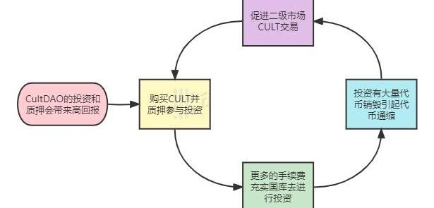 CultDAO的經濟模型以下為每個子系統的主要功能:稅務系統:每筆交互了CULT代幣的交易將產生0.4%的稅費,稅費將被收集至國庫。事實上,CultDAO的國庫就是一個投資資金池,而與其他風投DAO不同的是,資金池里資金來源并不是投資人的直接投資,而是來自于二級市場上交易CULT代幣的產生的手續費。市場上只要持續有人交易,稅費就會源源不斷地填充至國庫。質押系統:采用ve模型,可以通過質押鎖定流動性代幣CULT來影響供需。代幣的持有者被激勵長期鎖定CULT代幣,然后將其轉換為具有協議治理能力的dCULT代幣,dCULT代幣作為質押權益證明,它的持有者可以獲得質押獎勵和投資回報。當這些CULT代幣被鎖定時,它們會在很長一段時間內退出市場,從而減少拋售壓力。提案系統:dCULT代幣持倉量前50名的人被稱為守護者,他們可以對投資項目進行提案,提案中必須明確項目整體代幣供給、未來會返還給CULTDAO的代幣量、項目白皮書、審計結果、銷毀和分配計劃,并且附上項目的官方社交渠道和合約地址。持倉量低于前50名的人被稱為選民,他們可以對提案進行投票。如果提案通過,在國庫資金量足夠的情況下,資金就會自動發送到這個被投資項目的地址上。同時,守護者只有提案權,選民只有投票權。投資系統:當國庫中的資金量達到15.5ETH后,會自動對已經通過投票的提案進行投資。每次會有13ETH被直接發送至被投資項目的錢包,在事先商議好的規則下,將會定期解鎖被投資項目的代幣,這部分投資所獲得的代幣會被售出重新換為CULT代幣,所得收益其中會有50%會作為持有dCULT的質押者的分紅獎勵。銷毀系統:國庫每一次對提案進行投資,都會自動銷毀價值2.5ETH的CULT代幣。售出被投資項目的代幣所獲得的的收益,也會有50%直接打入黑洞錢包銷毀。CultDAO憑借什么吸引著它的「信徒」?