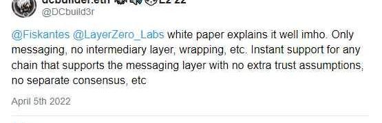LayerZero協議的功能類似于Cosmos生態系統的「layer0」IBC協議,至少在一般意義上是這樣。LayerZero的突出之處在于它使用了超輕節點(ULN),其提出了一種以經濟高效為前提,可以在鏈之間安全傳輸信息的新模型。