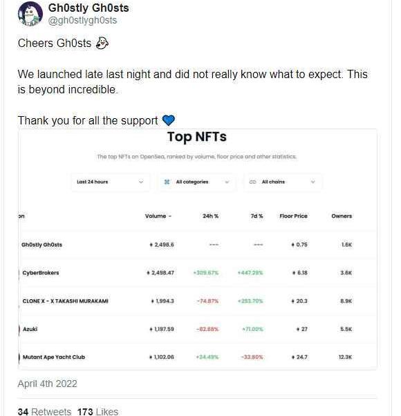 Gh0stlyGh0sts于4月4日低調推出,是第一個基于LayerZero的NFT集合,目前已經吸引了大量的市場眼光。