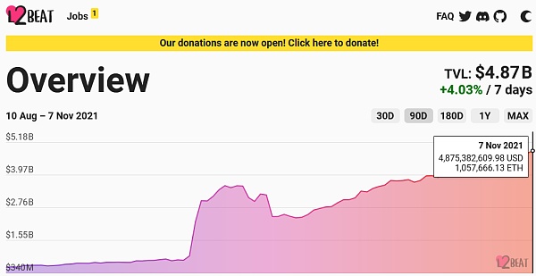 根據L2beat的數據,截止11月初,Arbitrum/Optimism等網絡中鎖定的資產總價值達到創紀錄的48.7億美元,給數據在過去三個月里增長近600%。