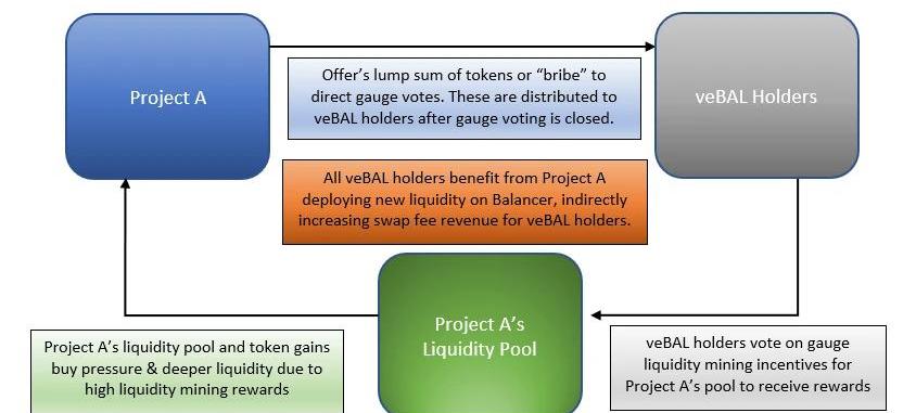 veBAL也將用于治理措施的投票機制,決定哪些池子可以獲得BAL的流動性挖礦獎勵。這意味著用戶可以將流動性挖礦激勵引導到他們選擇的礦池。這給我們帶來了下一個問題——BALBattle。BALBattle本質上將允許項目為veBAL持有者提供補償或獎勵,以投票給他們喜歡的方向,因此也被稱為「賄賂」。