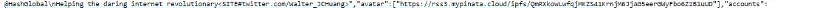 RSS3融合了區塊鏈技術和RSS協議,旨在構建一個靈活、高效、可擴展的去中心化信息分發協議。與大多數Web1底層協議類似,RSS協議缺乏激勵機制,難以構建商業模式或經濟生態。區塊鏈和數字貨幣的出現剛好彌補了Web1底層協議的激勵問題,允許底層協議在開源開放的基礎上,激勵底層去中心化網絡資源貢獻者,獎勵生態開發者,并最終將網絡、產品、用戶、開發者、網絡維護者和網絡資源貢獻者等多方利益綁定,通力合作,同舟共濟。去中心化數據流大致可以被分為創造、存儲、分發和展示四層,RSS3主要專注于數據的去中心化分發,并提供相應的存儲解決方案和展示模塊。用戶在使用RSS3生態的應用時,應用會幫助用戶在RSS3去中心化網絡中建立一個RSS3文件。該文件由以太坊地址設立,用戶可以將多個去中心化網絡的公鑰或者中心化系統的賬戶添加進RSS3文件中,并在RSS3中建立好友關系,構建自己的內容推送聚合入口和社交圖譜。如下圖所示,在我的RSS3文件中,可以看到我將以太坊地址、Twitter和即刻都添加進了我的RSS3文件夾。我在RSS3生態中的好友在使用RSS3生態應用時都能獲得及時的我的相關的內容的推送。