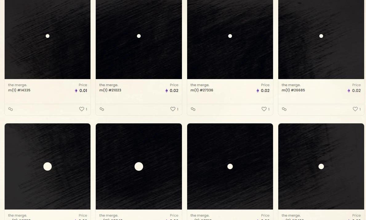 在Opensea上交易的二手“物質”。隨著mass在不同人手中傳遞,這個空間里的物質就會開始運動、碰撞。就像我們的宇宙,沒人能精準預言這些星體們將會如何演化、融合。可以說,這是一個動態變化的NFT,也是一場行為藝術。這場藝術的名字就叫TheMerge——融合。