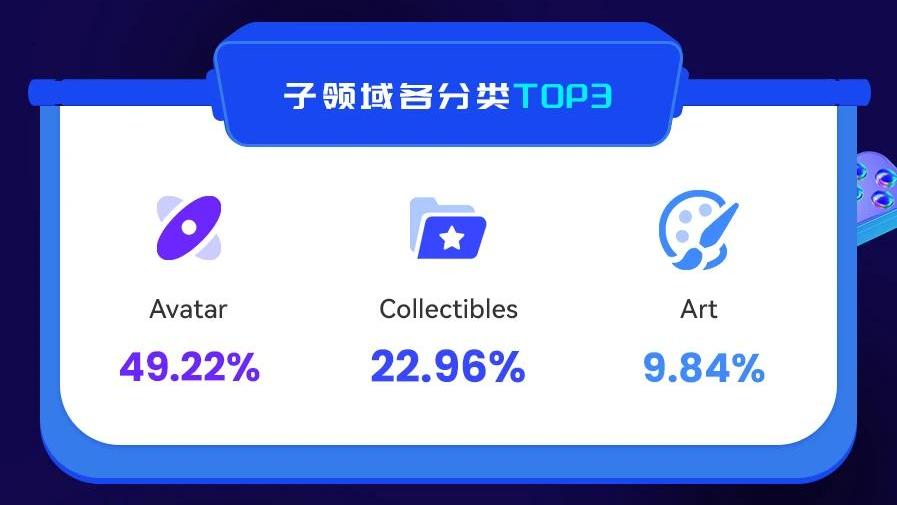 按市場占比,排前三的子領域分別為Avatar、Collectibles、Art。