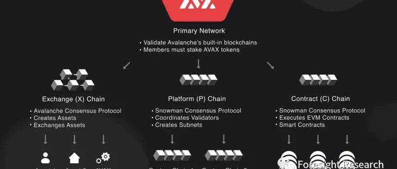 可適應環境的第三代共識機制Avalanche創造了全新的共識機制.之前的共識算法主要分為通過網絡內全節點多輪投票的Classical經典式共識機制,和依靠POW工作量證明的的Nakamoto中本聰式.經典的共識機制隨著網絡擴大,運營網絡的節點的成本也開始成規模增長(往往與節點數量n的二次方成正比),限制了網絡的增長空間,無法支持更多用戶的大型網絡.去中心化的中本聰式共識算法可以擴展網絡支持大量的用戶.但同時也因為礦工節點的隨意進出影響出塊速度,效率偏低.在康奈爾大學主研分布式系統的圖靈獎獲獎教授EminGünSirer,曾作為第一作者的身份貢獻出Libra的共識算法的Emin的教授TedYi,以及密碼學博士KevinSekniqi作為創始人,在基于亞穩定態和重復隨機采樣設計出Avalanche的”第三代共識協議“。亞穩定態指的是系統并不維持某一種特定的穩定形態,而是需要投票時才開始隨機抽樣并得到共識.所以Avalanche的節點門檻也相對較低,任何一個人都可以通過質押2,000AVAX成為節點,保證了去中心化的同時也降低了能源的消耗.Avalanche的共識是基于概率學的隨機抽查,抽查的次數取決于網絡的大小.但是相比于經典的共識機制,復雜程度是可控的(與對數函數成正比,數量級低于一次函數).Pangolin的創始人ConnorDaly就發文表示,一個節點重復采樣并得出錯誤的結論概率極小,低于0.0000000001%.對不同的節點樣本不停的進行抽查,到一定次數后會發現這些結果都將趨于一致,使得最終結果不可能逆轉.就好像開始時只有一片雪花,但是在不斷滾雪球的過程中形成了雪崩一樣,雪崩協議Avalanche由此得名.可配置的Avalanche共識機制,給開發者選擇節點的機會,可以調整網絡參數來平和安全或者性能.大量的開發者被Avalanche的機制吸引并加入這個生態的建設,比如DEXPangolin創始人ConnorDaly把網絡的安全性能提高到需要80%的節點串謀才能危險到網絡的安全,也就是說超過80%的節點給出了不同的答案.三鏈架構:與生俱來的擴容空間