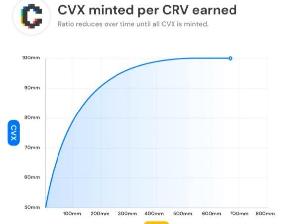 討論完優化平臺的戰爭,以及穩定幣交易量之戰,我們來到了更為波瀾壯闊的戰場,穩定幣項目的流動性租賃戰爭。前面兩場戰爭像是斗獸場建造權的戰爭,而現在,就是斗士們的戰爭了在2020年Defi狂熱期,各個項目通過二池的形式完成流動性的部署,而二池模型在Defisummer后期變成了死局,項目為了爭奪流動性,不得不把收益率提高到令人咋舌的地步,這樣使得Token的通脹速率難以控制,并在巨鯨的挖賣提下迅速崩潰,導致一個關鍵問題:項目方沒有足夠時間構建項目Token真正的價值共識,也無法均衡的分配Token。在CRV的交易手續費基本價值得到共識之后,算穩項目已經發現通過veCRV本身就可以分的全平臺的手續費的同時,足夠多投票權能給項目自身的爭取更多的有價值流動性鎖定鼓勵;同時鎖倉時間+投票權隨著時間衰退的特性,更加保證了幣價的上漲,這些特性都是項目間爭奪價值的基礎。Convex,Curve流動性戰爭的真正推手,將Curvewar徹底的白熱化,所以我們將會對Convex的產品機制進行一些盤點:Convex通過將CRV永久轉換成cvxCRV,分離了veCRV的投票權和收益權。crv通過cvxCRV變成了是一張可轉讓的永恒債券。相對之前,可以在不用鎖倉的情況下,賺取原來veCRV的大部分收益同時還賺取CVX;而veCRV的投票權轉讓交給了vlCVX——鎖定的CVX。CVX投票權代理,CVX的長期持倉用戶可以通過鎖定的CVX16周進行投票,也可以并且把投票權進行轉讓給特定的地址,使得賄賂選票機制更加容易執行。CVX的mint的曲線是會根據CRV收益claim之后逐步減少,意味著CVX是隨著CRV的增多的情況逐步通縮的,這意味著在保持住crv持續被吸收的情況下,越往后單個鎖住的CVX能夠控制的veCRV投票權會越來越多,間接代表了一個CVX的基礎價值。