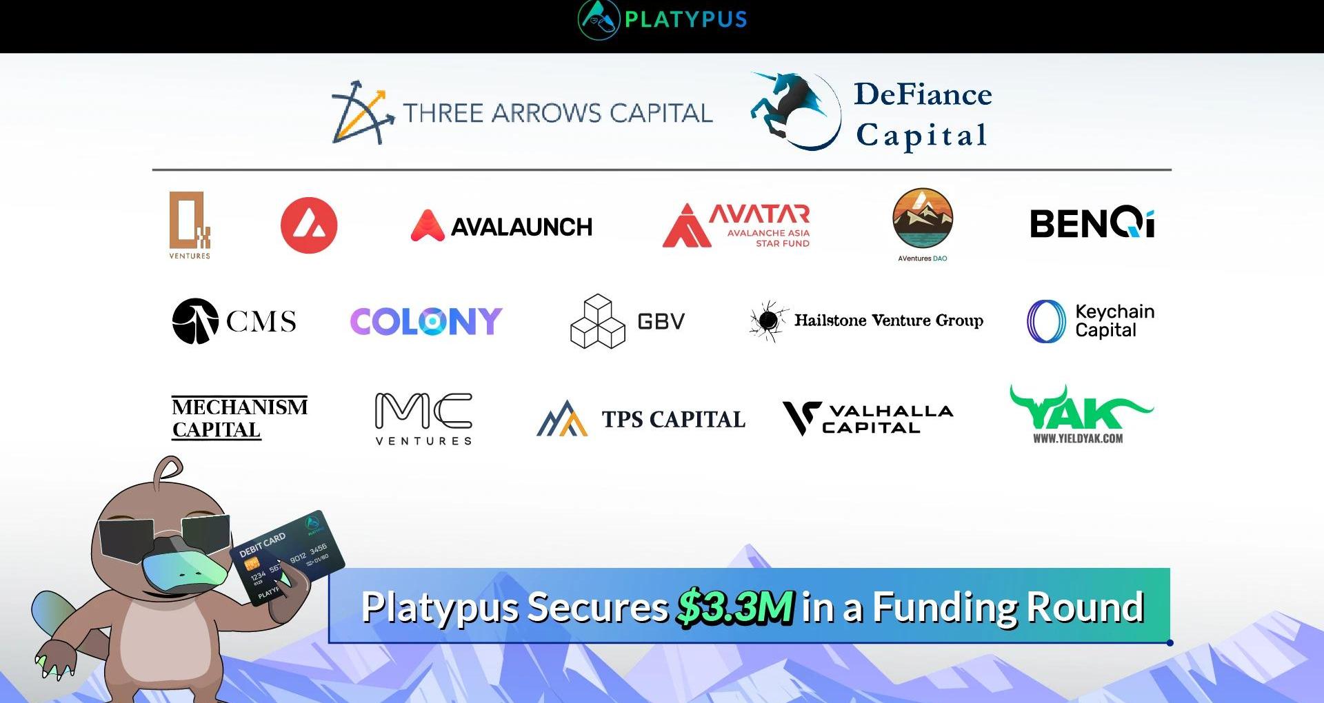 XRP/HKD-1.87%12月2日,Avalanche生態穩定幣兌換項目Platypus宣布完成330萬美元融資,本輪融資由三箭資本和DeFianceCapital領投,0xVenturesDAO、Avalanche、Avalaunch、Avatar、AVenturesDAO、Benqi、CMS、Colony、GBV、Hailstone、Keychain、Mechanism、Muhabbit、TPS、VahallaCapital和YieldYak等參投。