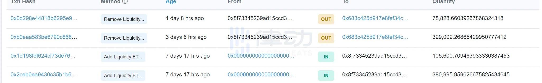 該地址在買入的同時,也在不斷增加SQUID的流動性,僅SQUID/WBNB流動性,就分兩次添加了約1960萬SQUID和250枚WBNB。