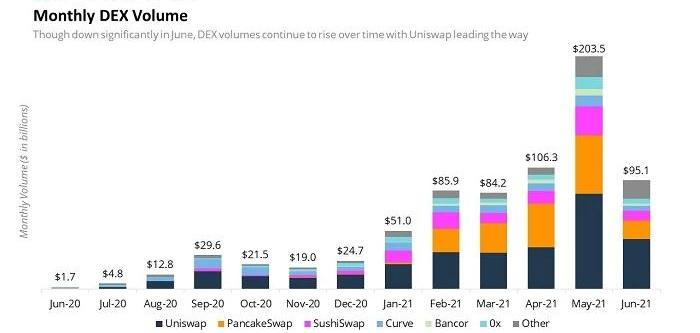 自5月以來,DEX交易量減半,6月交易量降至950億美元。盡管該指標有所下降,但6月份仍創下了歷史第三高的DEX交易量。
