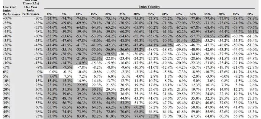 陰影部分表示1.5X杠桿代幣的損益優于標的資產損益X1.5從固定杠桿到浮動杠桿
