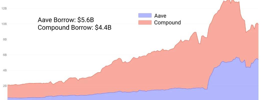 XRP/HKD-1.64%作者:LukePosey;翻譯:胡韜一段時間以來,借貸項目一直在總流動性方面領先藍籌DeFi項目,而Aave和Compound仍然在該領域占據主導地位。在不到24個月的時間里,它們的增長使鎖倉抵押品的總價值從1億美元增加到150億美元以上。這是由久經考驗的多資產超額抵押貸款公式驅動的。幾個月前,Aave的總存款超越了Compound,部分原因是其流動性挖礦激勵措施,并增加了額外的抵押品選項、穩定利率等功能。截至6月,Aave借款總額也逆轉了Compound,現在在存款和未償還借款中都占據主導地位。