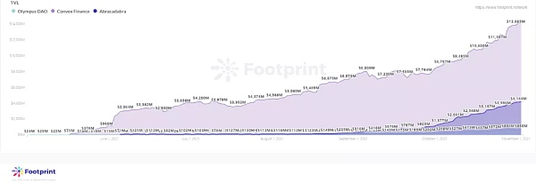 那么目前,有哪些代表性的DeFi 2.0項目呢?目前被討論和關注的比較多的有這六個協議,分別是Olympus DAO、Tokemak、Convex Finance、Abracadabra、Alchemix、Fodl Finance。由于篇幅限制,我們將選取具有創新代表性的Olympus DAO、Tokemak以及目前TVL排名較靠前的Convex Finance和Abracadabra來進行介紹,以便讀者更深入地理DeFi 2.0。