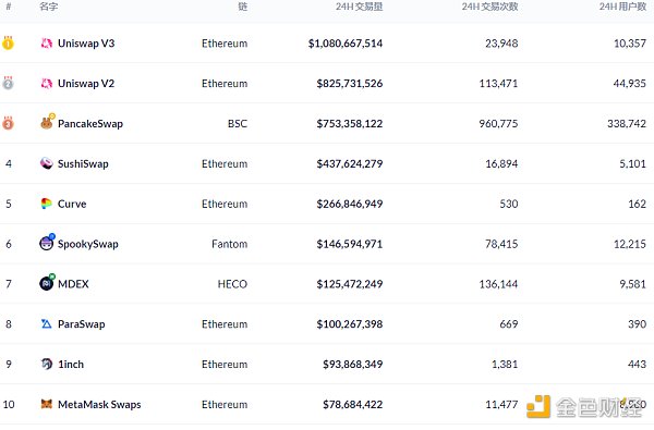 過去24小時去中心化交易所的交易量數據來源:Debank