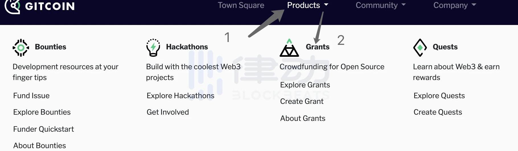 BadgerDAO、StakeDAO(現更名為BlackpoolFinance)和MaskNetwork等熱門項目均對參與了Gitcoin捐款的用戶進行了代幣空投,其中BadgerDAO和StakeDAO是對所有參與了GitcoinGrant8的用戶進行了空投,而MaskNetwork則僅對其捐贈的用戶進行了空投。在潛在的空投引誘下,小部分用戶開啟了「寧可錯殺一千,也不放過一個」的多賬戶,多項目捐贈模式。當前數據顯示,GitcoinGrant9第一天共有1677人參與,共捐贈15.8萬美元,平均每人捐贈94.2美元GitcoinGrant8在回顧中總結的數據為,5000人參與,共捐贈57.1萬美元,平均每人捐贈114.2美元。相比之下,平均捐贈量下降了17.5%。而從2020年12月22日到今日,比特幣和以太坊的漲幅分別為151%和183%。在介紹Gitcoin及其涉及的機制之前,先將GitcoinGrant9的捐款介紹如下,供大家參考,如有特殊情況,可以加入Gitcoin的Discordgrant-help頻道尋求幫助。1.登陸并注冊Gitcoin。https://gitcoin.co2.進入主頁,在選擇網頁最上端選擇Products,彈出窗口選擇Grants。