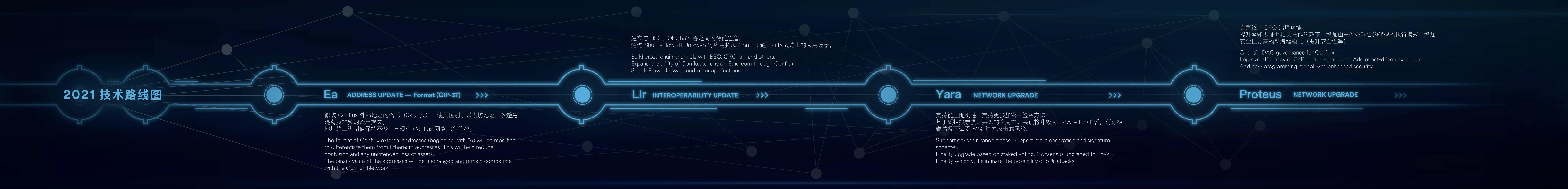 地址編碼格式更新—CIP-37—修改Conflux外部地址格式(0x開頭),使其區別于以太坊地址,以避免混淆及非預期資產損失;—地址二進制值保持不變,與目前Conflux網絡完全兼容。ADDRESSUPDATE—Format(CIP-37)—TheformatofConfluxexternaladdresses(beginningwith0x)willbemodifiedtodifferentiatethemfromEthereumaddresses.Thiswillhelpreduceconfusionandunintendedlossofassets.—ThebinaryvalueoftheaddresseswillbeunchangedandremaincompatiblewiththeConfluxNetwork.互操作性升級—實現與BSC、OEC、Heco等其他生態之間的雙向互操作;—通過ShuttleFlow和Uniswap等應用拓展Conflux通證在以太坊上的應用場景。INTEROPERABILITYUPDATE—Enablebi-directionalinteroperabilitybetweenConfluxandotherecosystemslikeBSC,OECandHeco.—ExpandtheutilityofConfluxtokensonEthereumthroughConfluxShuttleFlow,Uniswapandotherapplications.網絡升級—支持鏈上隨機性;支持更多加密和簽名方法;—基于質押投票提升共識的終局性。共識將升級為“PoW+Finality”,消除極端情況下遭受51%算力攻擊的風險。NETWORKUPGRADE—Supporton-chainrandomness.Supportmoreencryptionandsignatureschemes(EnableingotherWeb3walletslikeMetaMasktointeractwithConfluxNetwork).—Finalityupgradebasedonstakedvoting.ConsensusupgradedtoPoW+Finalitywhichwilleliminatethepossibilityof51%attacks.網絡升級—完善線上DAO治理功能;—提升零知識證明相關操作的效率;增加由事件驅動合約代碼的執行模式;增加安全性更高的新編程模式。NETWORKUPGRADE—OnchainDAOgovernanceforConflux.—ImproveefficiencyofZKP-relatedoperations.Addevent-drivenexecution.Addnewprogrammingmodelwithenhancedsecurity.