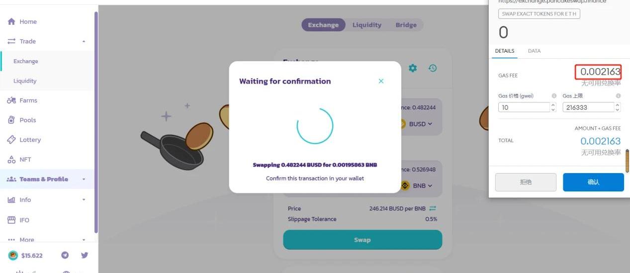 目前,在BSC上比較出彩的項目如下:交易、建流動性、基礎性挖礦:Cake銀行賽道:XVS、For、Cream機槍池:Acryptos、Autofarm、Bunny、Beefyswap賽道:Cake、Bake、Burger、Anyswap穩定幣賽道:bdolla保險類:Helmetwstoe其中,Cake類似BNB,XVS類似AAVE+UNI+MKR,ACS、Auto、Bunny類似YFI、Harvest。如果你有在以太坊上參與DeFi的經歷,這些項目上手會非常容易。而且相比以太坊,在上面交易的手續費低的令人發指。比如在寫這篇文章時,我在uniswap發起一筆交易,手續費是17.58美金,差不多100塊錢了。
