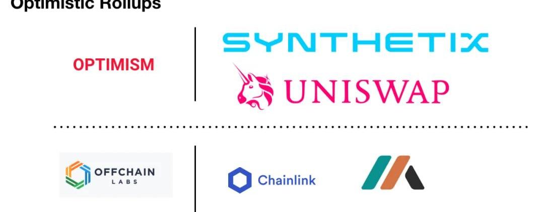 所以說,Layer2的崛起已經不是預測了,是一張明牌。算上DeFi前10名協議有明確L2計劃的項目,當前鎖倉量大概是100億美金,保守估計L2的資產量至少會達到這個量級。而Layer2跑應用+Layer1做清結算,才是以太坊區塊鏈最終的愿景,成為所有去中心化金融的資產結算層。這里有趣的點是主流的幾大DeFi協議如何“站隊”的問題,兩大陣營ZK-Rollup和OptimisticRollup劃分隊伍之后,現有DeFi協議的格局有可能會因此而被打破。主要DeFi協議Layer2擴容方案: