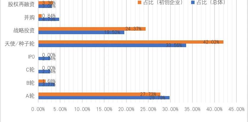 來源:01區塊鏈、零壹智庫進一步對比過去數年區塊鏈企業整體和區塊鏈初創企業的融資輪次分布情況,不難看出,區塊鏈初創企業的融資輪次更多集中在天使/種子輪和戰略投資,兩類占比合計接近初創企業融資數量的7成。圖21:區塊鏈初創企業的融資輪次對比