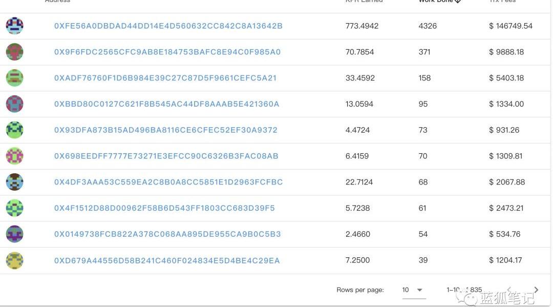 *jobs市場截止到藍狐筆記寫稿時,job市場totalcredits超過140KP3R,其中迄今為止賺取收益最多的keeper賺了773.4942個KP3R。