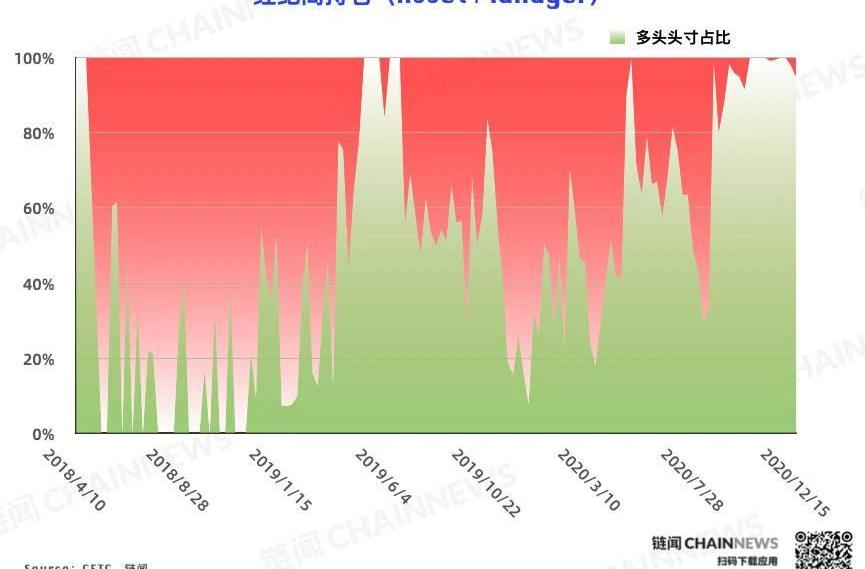 大戶持倉方面,多頭頭寸自2063張微降至2027張,空頭頭寸自177張同步下降至84張。大戶賬戶雖然在最新統計周期內同樣進行了多空雙向倉位同步減持,但是有一點值得強調的是,這類賬戶是四大類賬戶中唯一一類在比特幣突破20000前最后一個統計周期中,多頭頭寸持倉占比上升的一類賬戶。也就是說,大戶賬戶在加速上漲前做出的選擇相比上述兩大類機構投資者而言更為準確。