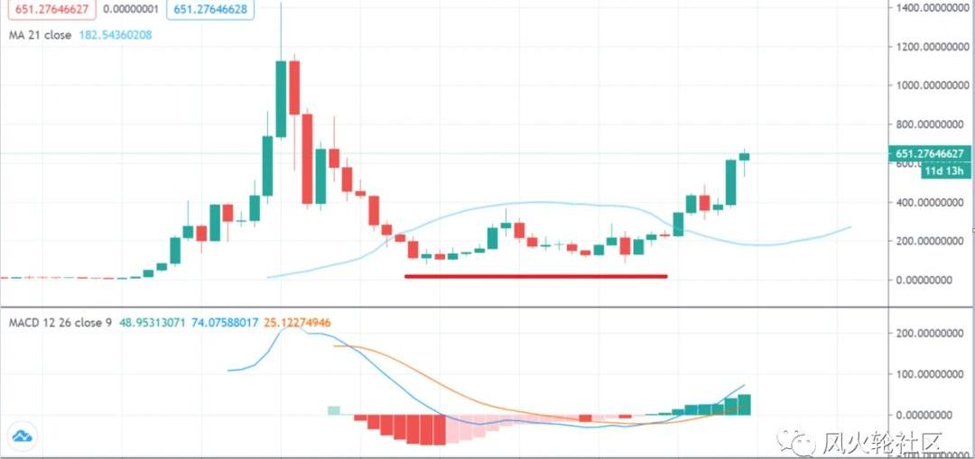 不過也還需要注意我們已經走了三個月大陽線了,本月還有10天,在今天的當月累計漲幅已經是19個點,十月和十一月的漲幅分別為28%和42%。如果本月漲幅不能超過上個月的42%。。回調的風險會是比較大的,特別是看下上面無論19年還是17年,月線上較大漲幅的情況一般也就連續三根。當然按照圈內很多媒體和kol的講法,現在和以前是不一樣的,有辣么多機構是不計成本在“囤幣”,那我們就看看下個月會是怎樣咯,咱不是什么唱空,只是有個B數還是需要清楚,一天900個餅的增量,要維持在2萬4,也就是每個餅都能在這個價格出售,理論上來一個月是需要6.4億美金。好了下面再來看看其他幣種,以太: