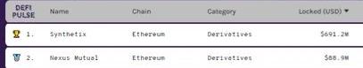 NexusMutual堪稱DeFi保險的鼻祖,去年就已經啟動,代幣是NXM,在DeFiPulse衍生品總鎖倉市值排行榜中位列第二。