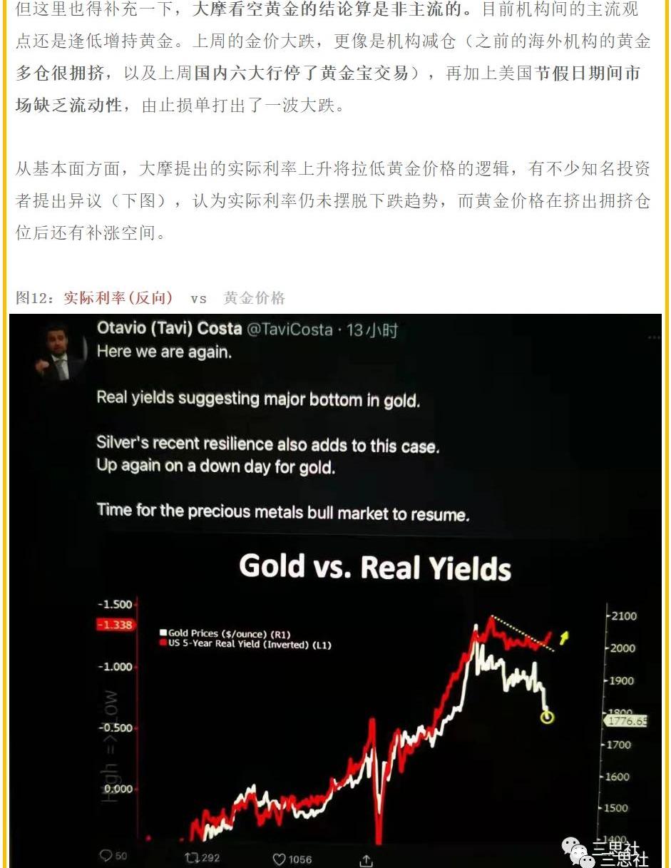 黃金下跌的部分原因三思社在前文《大摩2021年全球策略》已經提到(圖1),而比特幣的上漲或與10月以來其在機構圈掀起的熱潮有關。圖1:《大摩2021年全球策略》