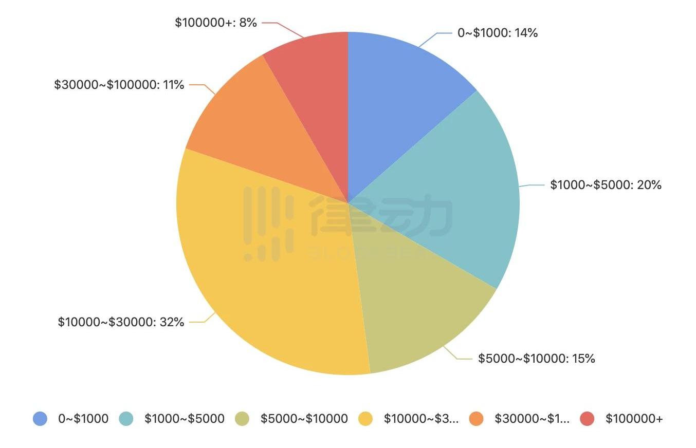這是個簡單的問題,但是結果卻有點出乎我的意料,我本以為進入NFT領域不到一年的人會更多,但實際上進入NFT領域三年以上的人卻更多。我認為這和我的推特粉絲屬性有關,在推特關注我和我的文章的用戶往往是在NFT領域深耕多年的用戶,這導致了這個問題的結果可能會和實際有所偏差。2、你在一個NFT上最多花了多少錢?