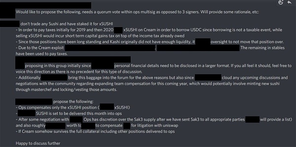 rekt.news 獲得了 Sushi Core 聊天的訪問權限(當時設置為公開訪問),在那里我們看到了 Sushi 團隊成員進行的內部民意調查的結果。