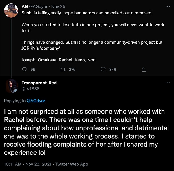 當被其他團隊成員詢問時,Omakase表示分配不均是0xMaki的想法,而實際上是Rachel將0xMaki作為替罪羊,而0xMaki實際上要求將所有獎金直接分配給xSushi持有者。