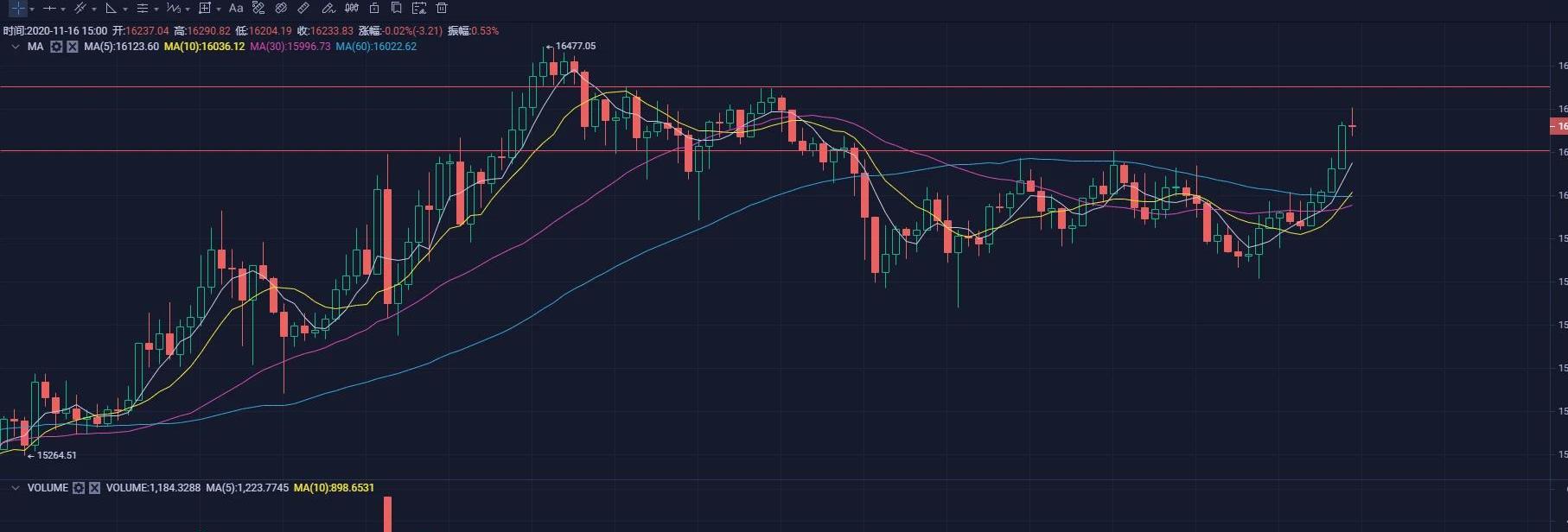 僅以當前的行情來說直接網上推高的概率并不大,可以觀察一下前幾周的行情,在遠離5日均線時都會稍微向下試探一下再漲,這也是我們認為的比較健康的方式,上半周回踩,下半周繼續拉,而本周在離5日均線較遠的情況下直接向上拉,缺少了足夠力度的支撐,預計后續還是會回落。小時線上的支撐和壓力位很明顯,下午2點左右先突破了16160附近的第一壓力位,當前正看向16360的壓力位,但可以看出來明顯有難度,預計會先回踩一波13160看看支撐力度再選擇是否沖擊。