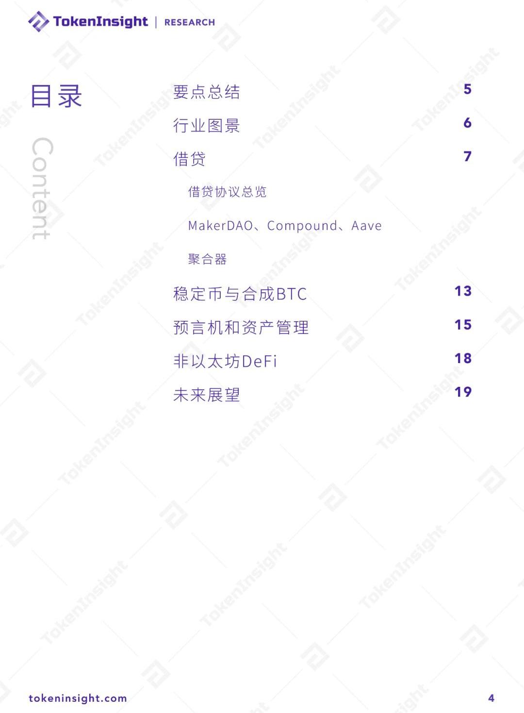 1.借貸領域季度末鎖倉值較季度初增長294%,清算額為二季度的10倍;2.九月下旬起MakerDAO表現強勢,重回鎖倉值榜首,借貸壟斷程度低于DEX,且整體行業已能夠產生較為穩定的現金流;3.第三季度以太坊上去中心化穩定幣發行量占比上升4.18%,DAI的發行量上漲527%,發行量在10月底達9億美元;4.DAI、USDT、USDC為DeFi中未償還債務最高的資產;5.WBTC鎖倉量可以頭部DEX和借貸項目媲美,九十月份鎖倉值變化遠優于DeFi整體水平;6.聚合器yearn.finance第三季度鎖倉值翻97倍,YFI價格上線僅兩周價格超過比特幣,成為最貴的數字資產;7.預言機維持“一超多強”競爭格局,DeFi發展直接影響預言機使用量;8.資產管理類項目收到流動性挖礦和收益聚合器項目崛起的沖擊,資管協議鎖倉值占比持續下降;9.其它公鏈積極建設DeFi,但以太坊DeFi生態仍舊占據絕對優勢。