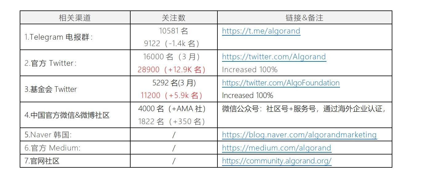 l從粉絲數據來看Algorand在海外最主要的Twitter社區近7個月收獲了近乎翻倍數量的粉絲,團隊與基金會的twitter收獲將近19000名粉絲。這可能得益于,Algorand的主要合作方均為國際海外項目,也引起了該合作方關注者的興趣與關注。l項目宣發,中國韓國區域主要以覆蓋為主,合作項目與合作機構相對較少,更多目標為開發者類機構。項目的更新以技術更新為主,2020年增加了更新版本的大使計劃與開發者獎勵計劃。從長遠角度出發,干貨更新與技術更新等,更可以判斷出項目方對于價值觀的判斷更加關注長期利益。l技術社區使用Algorand公鏈的人對性能的反饋均較為積極。從市場關注度來分析,機構與主流媒體對該項目的重大合作消息仍舊有著較強的期待與及時的跟蹤報道。五、應用潛力分析(10月更新)