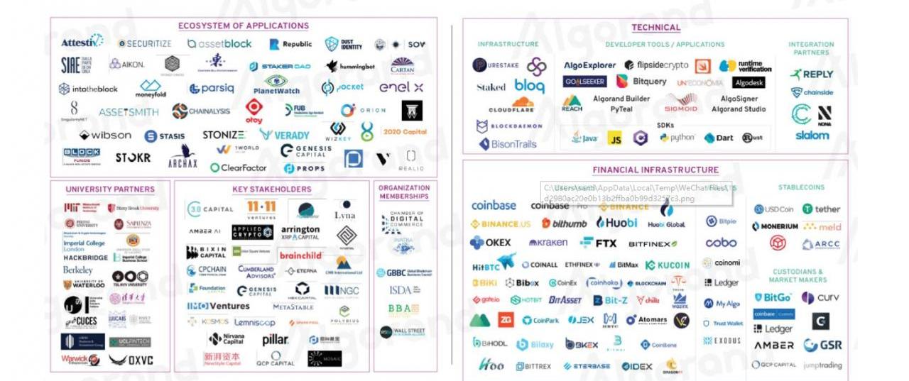 1.普惠金融與證券類應用合作全球知名投資平臺及技術服務提供商Republic將基于Algorand平臺構建一種全新的數字化SEC合規利潤共享通證Note。Republic通過眾籌及私人銀團貸款已經為170多家初創公司募集了資金,包括特斯拉創始人ElonMask的SpaceX;去年促成了約6,750萬美元的投資。憑借Algorand簡化的資產創建流程、快速的金融交易和即時的交易終結性,Republic將從開放金融創新的前沿技術中獲益。合規的數字化證券發行平臺Securitize也與Algorand合作,使得發行商將可以通過Securitize的DS協議在Algorand區塊鏈上發行數字化證券。IBMR.io將在Algorand2.0平臺上推出東南亞小額信貸平臺,ARCC.one旨在支持AisaReserveCurrencyCoin(ARCC)成為全球首個“微型資產”,從而可以幫助東南亞城市的貧困工薪階層能夠融入現代金融體系,目前東南亞共有約3億多的成年人沒有銀行賬戶,也沒有適當的信貸、投資和保險渠道。這導致數字支付成為無銀行賬戶的人的首選支付方式,預計到2025年,數字支付將占所有交易的近一半,突破1萬億美元大關。2.國家級合規數字貨幣應用Marshall馬紹爾群島主權數字貨幣(SOV),將使用Algorand技術建造世界上第一個國家數字貨幣。SOV將與美元同時在該國流通,幫助馬紹爾群島在全球經濟中高效運轉。SFBTechnologies作為該計劃的主要負責人,稱選擇Algorand的原因在于其同時具備的高速、可擴展性、安全性與合規性。世界上第一家合規數字貨幣授權提供商Monerium達成合作,2020年基于Algorand底層協議發行數字貨幣,加速推動區塊鏈主流應用的發展,2019年6月,Monerium獲得冰島金融監管局頒發的數字貨幣許可證,這是全球首個基于歐盟電子貨幣法規頒發的區塊鏈電子貨幣許可證。并已在歐盟、冰島、挪威及列支敦士登地區,全面支持包含美元、歐元、英鎊和冰島克朗在內的數字貨幣。FlexFinTx的目標是僅通過手機,就可以幫助非洲4億人記錄其數字身份。通過使用Algorand的區塊鏈平臺,FlexIDs具有防篡改和自主權的功能,這意味著沒有組織可以在未獲得個人許可的情況下訪問用戶的信息,并且用戶可以完全控制他們的數據。3.國際金融保險清算等金融&DeFi合規應用業務等:Algorand已成為ISDA的成員,InternationalSwapsandDerivativesAssociation通過與ISDA合作和區塊鏈上實現它們的公共領域模型(CDM),金融組織將能夠使用現有的模板和編程工具輕松創建去中心化的金融工具Algorand通過符合伊斯蘭教法的融資認證伊斯蘭機構現在可以開始使用Algorand區塊鏈進行經濟交易。Attestiv通過Algorand賦能保險行業生態的數字化轉型,以解決美國損失超過400億美元財產和意外險欺詐的問題,進而賦能整個保險行業的數字化轉型。Attestiv的核心技術可支持數字媒體、傳感器數據、元數據等,一旦證據被數字媒體捕獲,將會以加密、防篡改的“感知指紋”形式存儲在無法更改的區塊鏈上,這些指紋將被存儲在Algorand區塊鏈上,以確保數據保持原狀、不被篡改4.金融穩定貨幣應用:Tether是第一個利用Algorand2.0中發布的穩定幣,將提供即時確認、微支付和自動錢包支持。將使Algorand用戶能夠訪問最具流動性、最穩定交換USDT的媒介。Tether的集成和開發將會為在Algorand平臺上的通過大批去中心化資產開發應用而帶來巨大的金融機遇,且速度與穩定是此類應用的關鍵要點,如果要承載龐大的交易量,一個安全與快速的底層網絡是未來大規模應用的根基。Circle將Algorand作為官方合規穩定幣USDC的發行公鏈平臺,這將使Circle商業賬戶和CircleAPIs的客戶能夠輕松地在傳統銀行和銀行卡網絡之間將資金轉移到Algorand區塊鏈上的數字美元。這種協作將為金融機構提供他們需要的工具,從而充分利用USDC的獨特優勢,并提供企業級解決方案用例。MeldGold將基于Algorand技術發行去中心化的黃金代幣,計劃把區塊鏈技術融合進入現有黃金供應鏈.投資者和消費者將能夠通過這個鏈接各大合作伙伴及黃金供應商的全球網絡,同時交易實體黃金和數字黃金代幣。5.房地產、藝術品等實體資產通證化應用:Props是一個通過了SECRegA+豁免的區塊鏈代幣獎勵系統提供商,Props的合作伙伴可以通過接入API來為他們的App內用戶提供SEC合規的代幣獎勵,并通過UserCapital這種新型資本形式與用戶共同分享網絡價值。Props已經集成了YouNow、Camforg、Listia、Paltalk四大千萬用戶級別的應用。Props將數六百萬用戶全部由以太坊ETH遷移至Algo鏈上,日轉賬數百萬次未出現任何卡頓擁堵現象。AssetBlock推出基于Algorand的投資平臺,將可用Algo交換價值6000萬美元的通證化房地產權益。Realio是一家專注于房地產私募股權投資的,端對端數字資產發行和P2P交易平臺。Realio發行網絡是一個基于第2層的解決方案,用于在全球司法管轄范圍內建立合規發行和互聯的去中心化生態系統。OTOY的AcademyAward-Winning技術被全球領先的視覺效果工作室、藝術家、動畫師、設計師、建筑師和工程師所使用。通過Algorand和渲染網絡,藝術家可以存儲和訪問他們的創作6.全球規模通信、質量、數據等應用法國環境監測服務公司PlanetWatch,將利用Algorand區塊鏈和物聯網技術,建立世界上第一個不可變的空氣質量分布式賬本。PlanetWatch將把從空氣質量傳感器上收集到的數據,存儲到Algorand區塊鏈上,并將通過分發PLANET通證來獎勵對生態系統作出貢獻的傳感器所有者。Algorand區塊鏈將為所有參與者,創建一個可訪問的、包含已驗證數據的、不可變