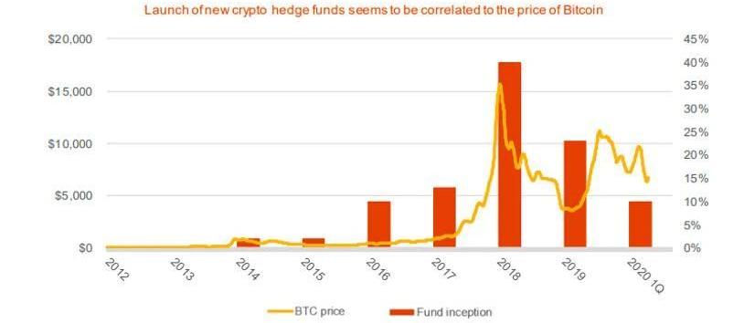 圖8,數據來源:GrayscaleInvestments2017年開始,傳統市場與比特幣的隔離局面出現改變,全球首個受監管的比特幣基金正式上線,為機構客戶打開了大門;Winklevoss兄弟嘗試推出比特幣ETF;《華爾街日報》首次將比特幣作為一種合法的投資資產,而不是僅僅局限于社會邊緣的黑暗事物;CBOE和CME比特幣期貨上線,機構投資者和傳統投資者加入比特幣大軍......截止2020年第一季度,全球有150支比特幣對沖基金,其中63%是2018年以后成立的。這些對沖基金的客戶構成中,大約90%是家族辦公室或高凈值個人,捐贈基金、VC以及母基金的占比較小。