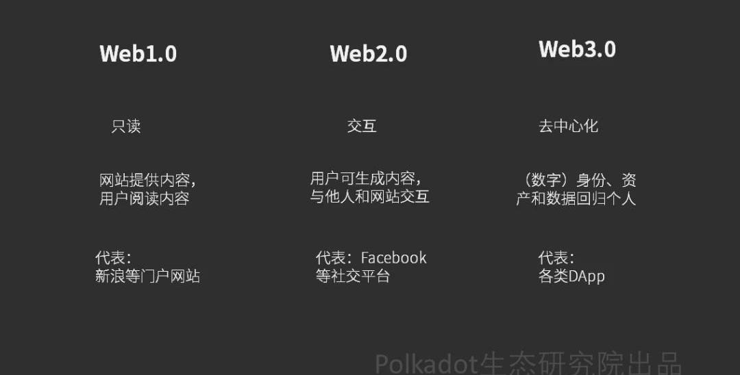 其實在Web2.0概念被提出來時,還并沒有Web1.0的說法。Web2.0是由DarcyDiNucci于1999年發明,后來在2004年底的O'ReillyMediaWeb2.0大會上由TimO'Reilly和DaleDougherty推廣,Web2.0才更被大家所接受。而為了區分,便把之前的網絡發展時期稱為Web1.0。Web1.0的特點是網站提供內容,用戶閱讀內容,就好比我們看電視,只能看別人想展現給我們的內容,而我們沒有辦法左右電視臺播放的內容。然而隨著越來越多的人加入到互聯網行業中,一些更有意思的商業模式逐漸誕生,比如博客的誕生,Facebook社交平臺的誕生,國內大家比較熟悉的就是QQ空間之類的,而這一類網站和應用最大的特點就是,允許用戶自主生成內容,與網站和他人進行交互,互聯互通,這也就是Web2.0的特點。從Web1.0的“只讀”到Web2.0的“交互”,其實并不是一個更替的過程,雖然現在大部分的互聯網應用和產品都是屬于Web2.0,但仍有許多屬于Web1.0的項目在運行。而身處Web2.0的許多互聯網從業者,也在思考互聯網下一步應該如何發展,于是,便有了各種Web3.0的暢想。