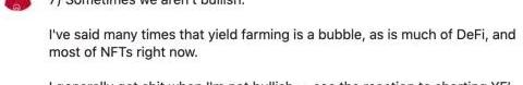 SBF曾公開表達他對yieldfarming的負面看法,同時,他也不看好基于ETH1.0的DeFi,因為平臺的不可擴展性對項目來說是致命的。SBF認為,自己做空某些幣,并不是心存惡意,只是單純覺得價值被高估了,而當市場崩潰時,他又會從恐慌賣家手中購買自己認為低估的品種。曾在傳統金融業的自營交易公司JaneStreet工作三年,SBF看起來就是一個典型的華爾街出身交易員:冷靜理性,堅守交易策略,不受市場干擾。