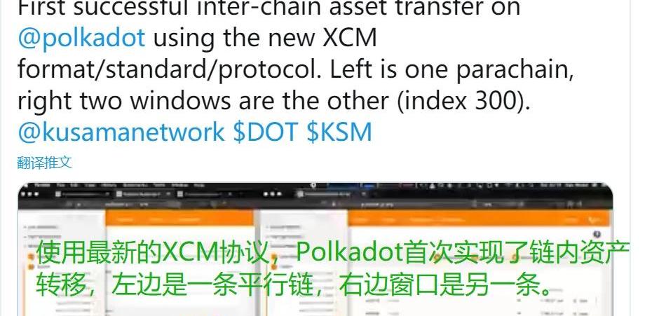 9月13日,波卡創始人GavinWood發推稱,使用新的XCM格協議,在波卡網絡上已首次成功進行鏈間資產轉移。