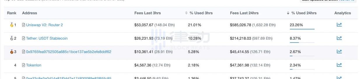 據律動BlockBeats查看,24小時內,DEGO的申領合約的GAS費消耗已經到達第三名,僅次于Uniswap和USDT的GAS費消耗。