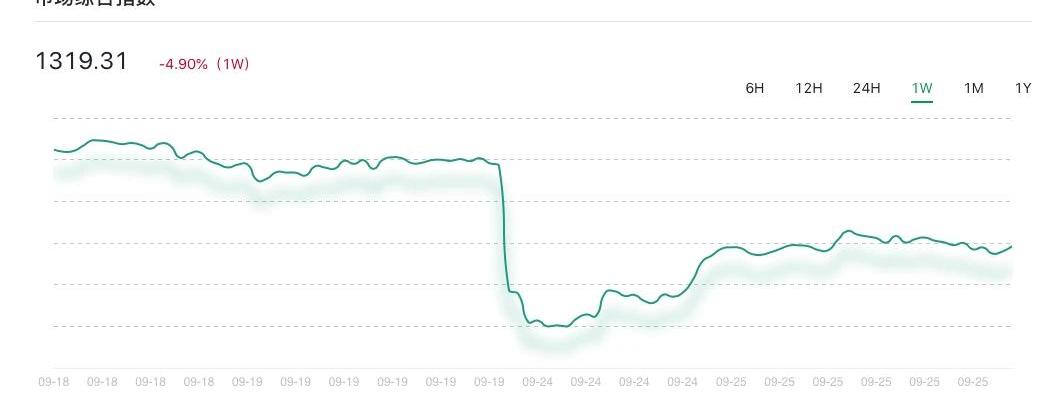 根據標準共識市場綜合指數反映,最新指數為1,319.31,較上周下降4.90%,市場在上漲承壓后,開始放量下跌。再有所反彈的情況下,整體跌幅仍然較大,這主要是受外部市場走勢所影響。美元三連陽的情況下,黃金、石油等商品期貨承壓下降,每股也在承壓下跌,數字貨幣市場目前與外部市場聯動的情況下,跟隨下跌。短期來看,外部市場仍無企穩現象,數字貨幣市場仍具有一定下跌空間。