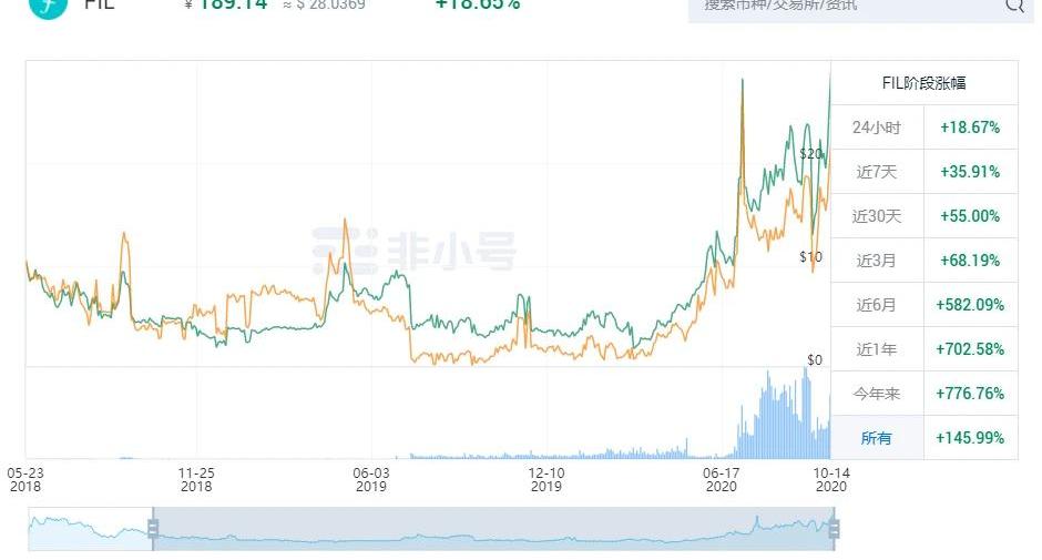 XRP/HKD-1.56%隨著秋天的來臨,DeFi的夏季狂熱似乎也正在降溫,取而代之的是歷經多次“跳票”,終于要啟動主網的分布式存儲明星項目——Filecoin。9月29日,Filecoin表示主網將在epoch148888正式開啟,預期將在10月15日左右到達這個epoch。消息一出便引起了幣圈的廣泛關注,據非小號數據,截至10月13日,FIL近七天漲幅達到35.91%。